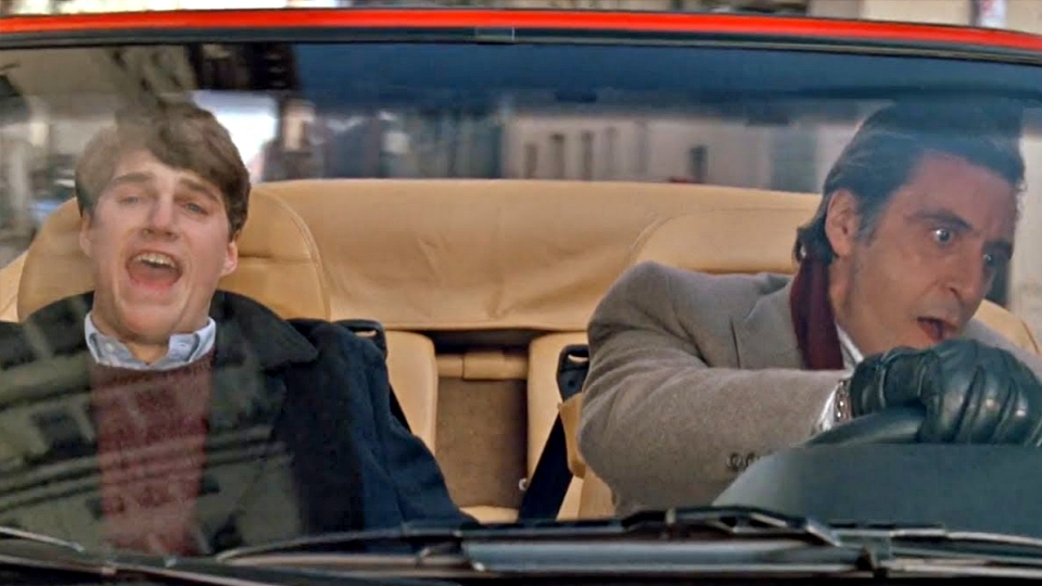찰리는 풀 죽어있는 슬레이드에게 페라리 자동차를 시승하러 가자고 제안합니다. 눈이 멀었기에 페라리를 빌리는 것은 꿈도 못 꾸던 슬레이드는 시각장애인이란 것을 들키지 않고 시승에 성공했습니다. 그리고 그들은 미친 듯이 일탈하며 과속을 했습니다.