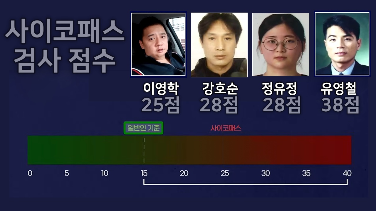 사실 강호순의 사이코패스 검사 점수는 매우 높은 것은 아닙니다. 끔찍한 살인마였던 조두순, 이은해, 유영철, 정남규 등과 비교하면 꽤 낮은 점수입니다. 그런데 무서운 것은 오히려 잘난 척을 하고, 다른 범인들처럼 흥분해서 욱하다가 실수하는 등의 경우도 없었다는 것입니다.