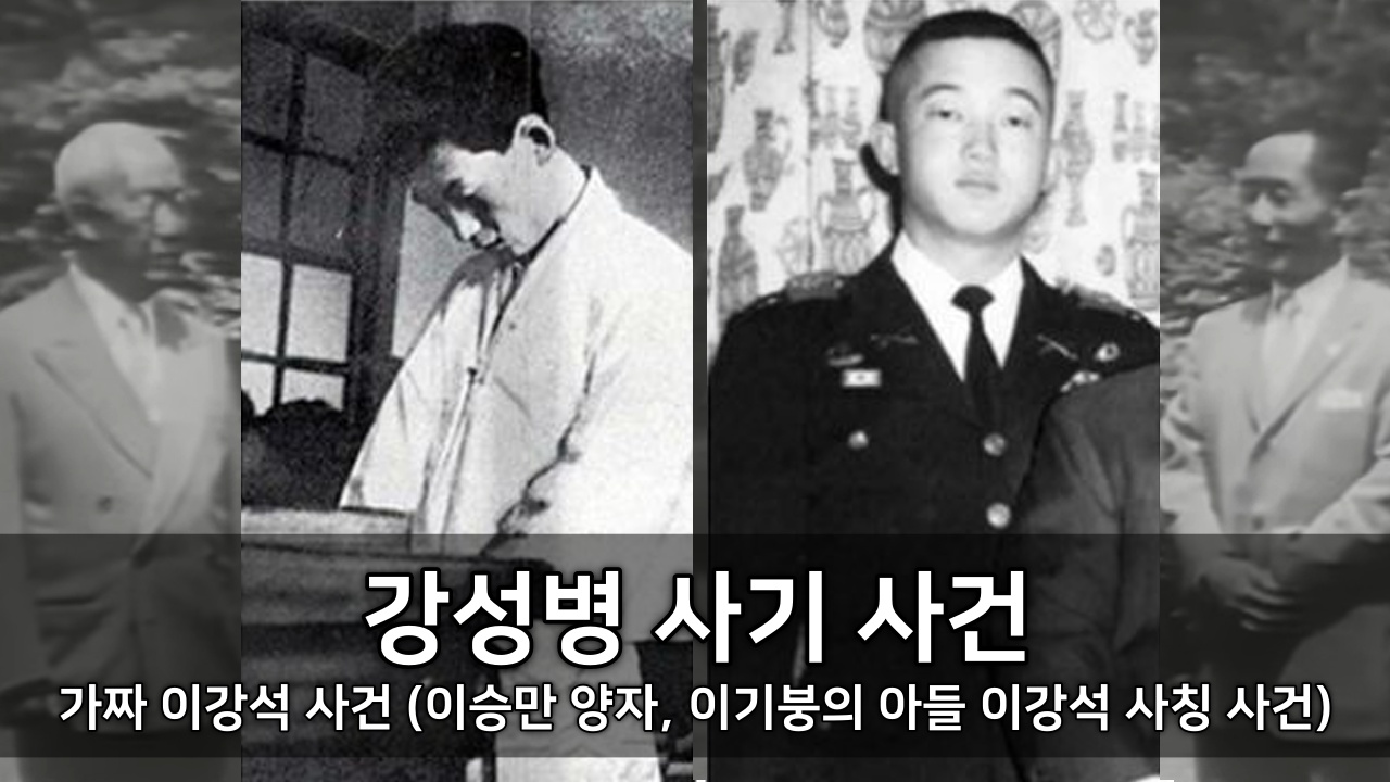 정치와 권력자 사칭 사건이므로, 일단 이승만의 양아들 이강석에 대해 알아야 합니다. 그가 나중에 아버지 이기붕을 죽인 인물이기 때문입니다. 그런 배경 위에서 강성병이 어떤 사기를 쳤는지도 이어서 설명합니다.