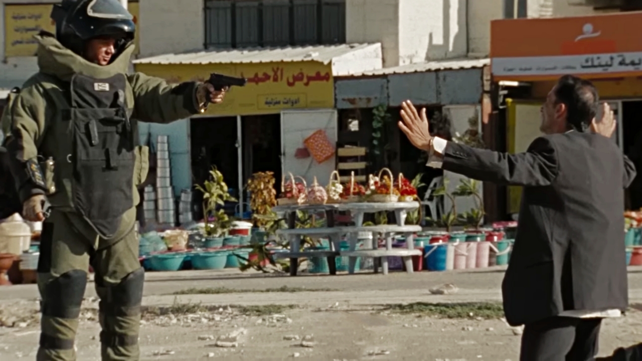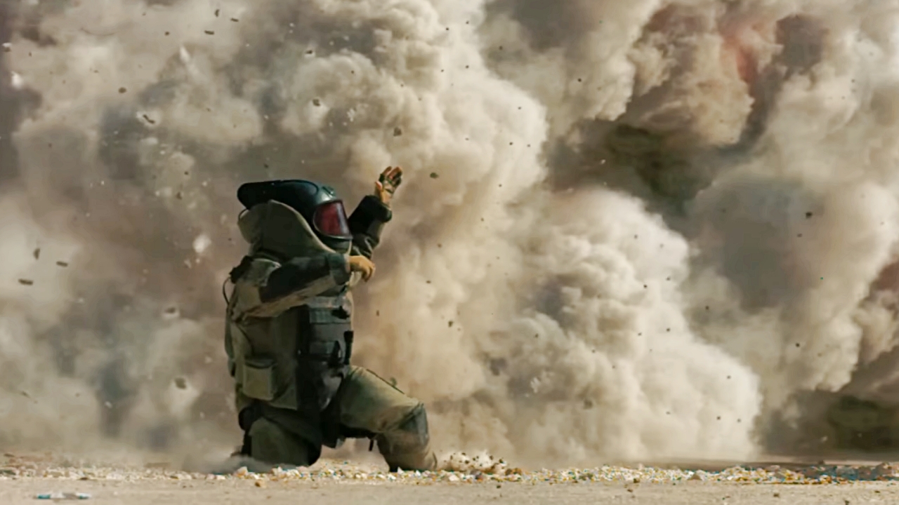 파병이 끝나기 하루 전, 그들은 한 남성의 몸에 묶인 자살 폭탄을 해체하라는 명령을 받게 됩니다. 그러나 제임스는 타이머가 만료되기 전에 자물쇠를 풀지 못하고 남자를 내버려야 했습니다. 결국 큰 폭발이 일어나고, 공포에 질린 남자는 눈앞에서 사라집니다.
