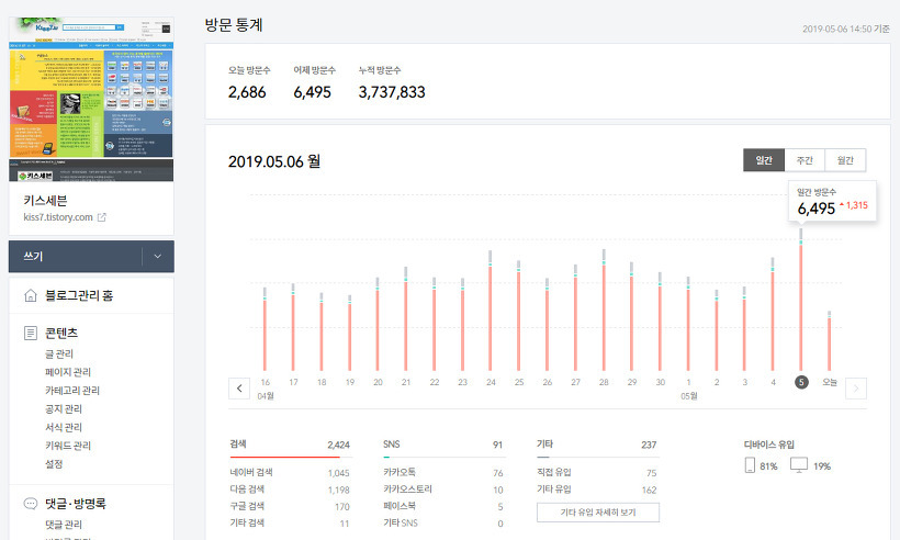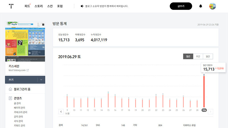 일일방문자 1천명에 가까워지고 최대 방문자가 하루 2만명이 되는 등의 성장을 하고 있습니다. 방문해 주시는 분들께 감사드리며, 지식을 잡지처럼 쉽게 공유하는 세상이 되길 바랍니다.
