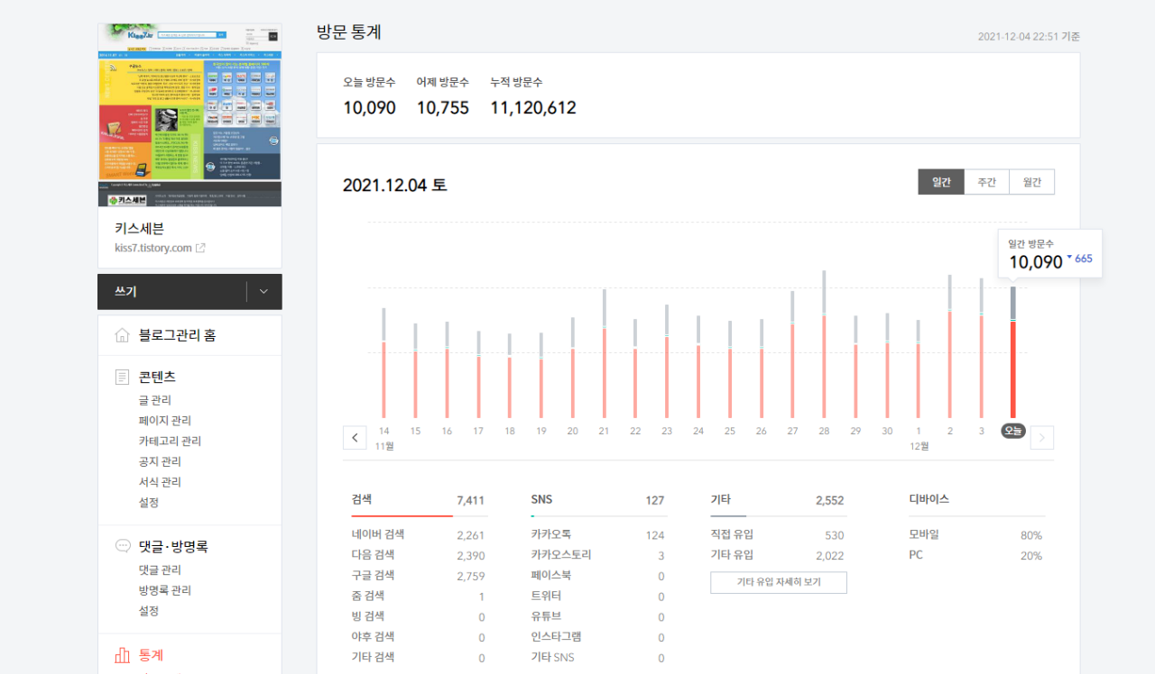 얼마전 키스세븐지식 누적방문자가 1000만 명을 돌파했었습니다.